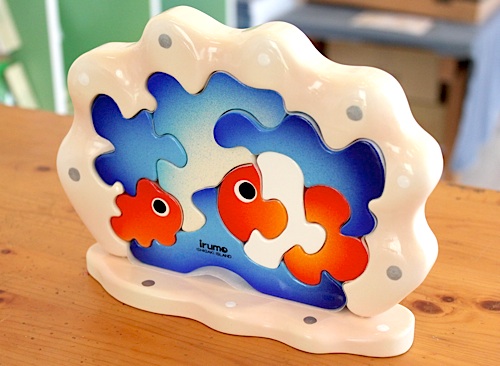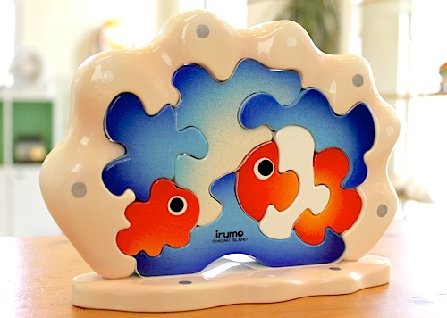 「パイナフィッシュ」。パイナップルが魚に変身するパズルです。かなり強引なようですが、パイナップルは今までにない形でした。