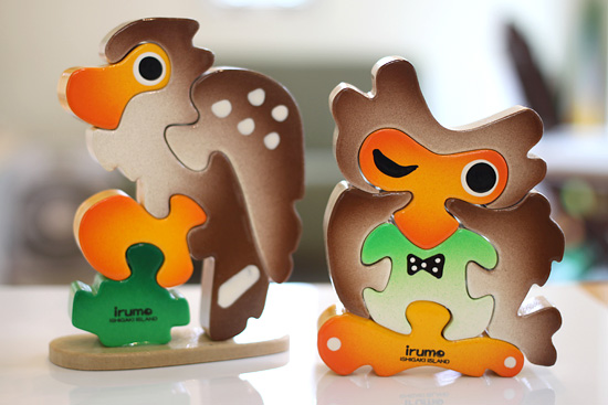 写真右「フクロウ」。カンムリワシ人気には負けてしまいますが、たまにフクロウファンの方々に喜んでいただけました。今見るとなかなか良いキャラではないかと思います。2018年の作品。